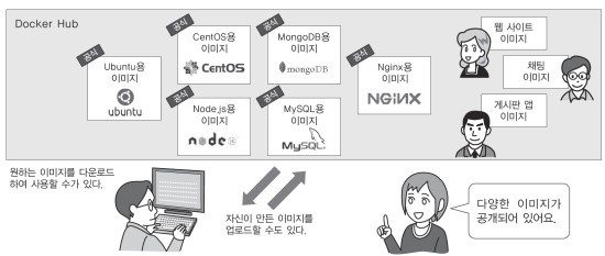 또한 공식 이미지 외에도 개인이 작성한 이미지를 Docker Hub에서 자유롭게 공개하여 공유할 수가 있다. 이미 많은 Docker가 공개되어 있으므로 요건에 맞는 것을 다운로드하여 사용하면 된다.