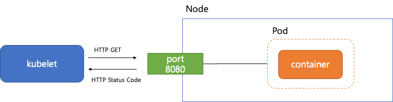 위의 매니페스트 파일은 livenessProbe를 실행하기 위해 kubelet이 컨테이너의 8080:/healthz에 HTTP GET 요청을 송신합니다. 이 리퀘스트의 HTTP Status Code가 200이상 400미만인 경우는 성공으로 간주됩니다. 그 외의 스테이터스 코드가 반환된 경우(404, 500 등) 오류로 간주하여 kubelet이 컨테이너를 재시작합니다.