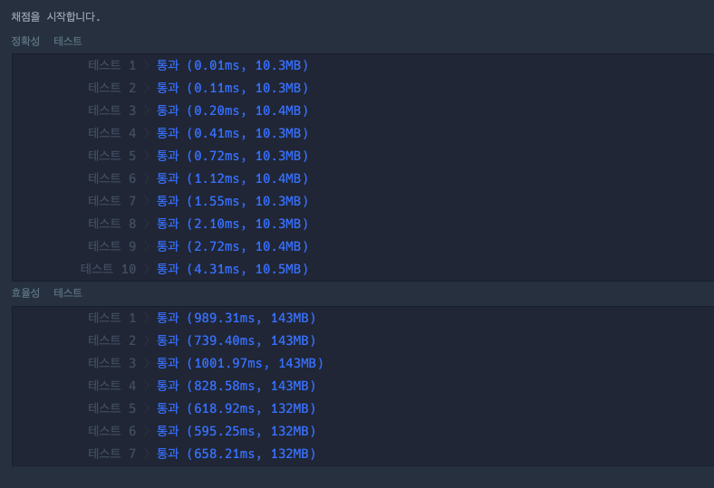 효율성 테스트 통과 코드