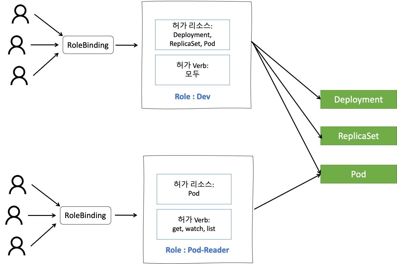 그리고 Role과 계정을 연결하는 것이 RoleBinding 입니다.