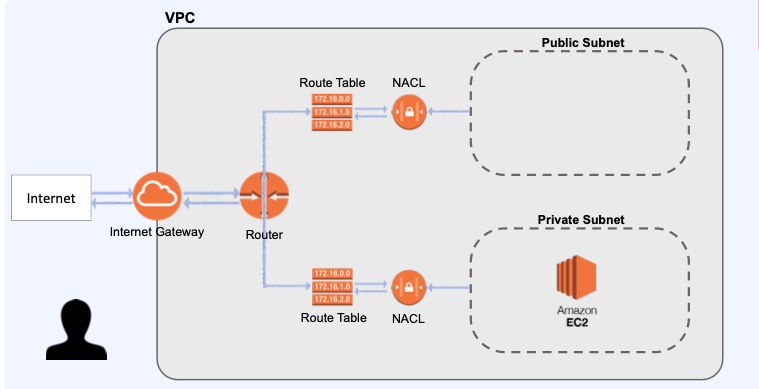 - Private Subnet에 속한 인스턴스의 경우 외부 인터넷에 접근할 수 없지만 Public Subnet으로 우회해서 인터넷에 접근할 수 있음. (데이터베이스 설치를 위함)